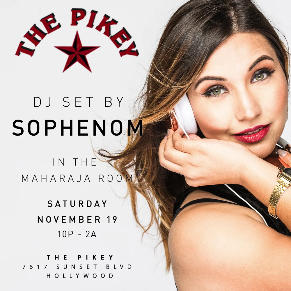 We've got DJ Sophenom on the cut this Saturday, November 19th from 10p-2a at The Pikey Hollywood playing hip-hop, throwbacks, and party hits!